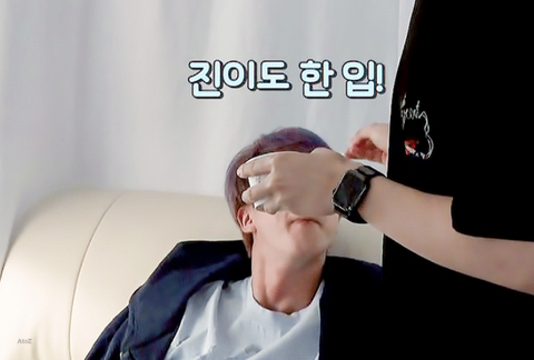 진이 입 벌리고 있으면 동생들이 날라다 줌ㅋㅋㅋㅋㅋㅋ