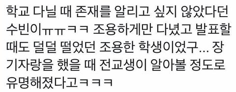내성적이고 조용한 학생이었던 수빈