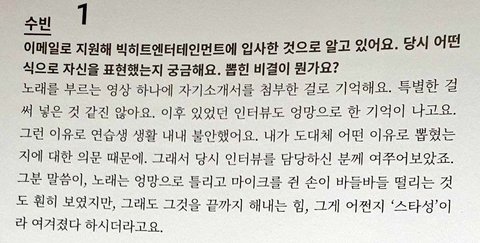 (수빈이는 빅히트에서 연락이 없길래 오디션 탈락한줄 알았다고함)