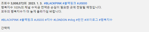 지수 오늘 유튭 채널 개설하고 영상 올렸어