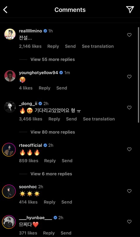 송민호, 김동혁, 식케이, 알티 등 댓글 달았넹….