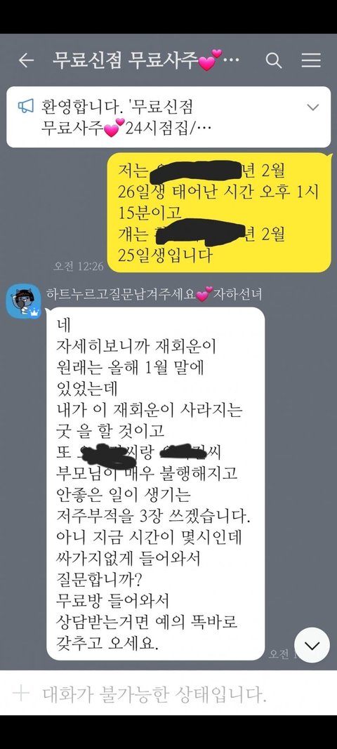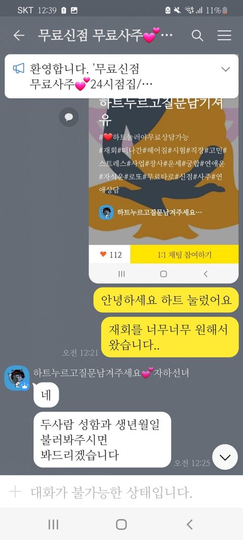 카톡 옾챗으로 타로 보는거 조심해