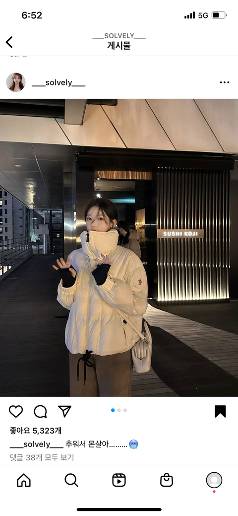 ㅜㅜㅜ혹시 위에 패딩 브랜드 아는사람 있나여ㅠㅡㅠ 아무리 찾아보는데 안나와서 도와주세요ㅠㅠㅔ입고계시누인플루언서 분께 디엠드려도 ,, 대답이 없으세요ㅠㅠ