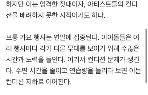 "워낙 슈퍼 스타라 연말에 바빠서 컨디션도 저하된 상태였음"