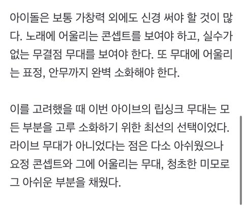 "립씽크였지만 대신에 청초한 미모로 무대를 채웠음"