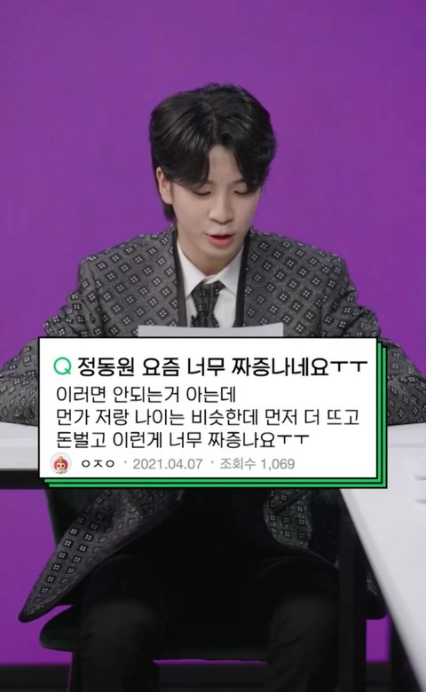 동원이가 본인이랑 나이는 비슷한데 먼저 뜨고 돈버는게 짜증난다는 댓글
