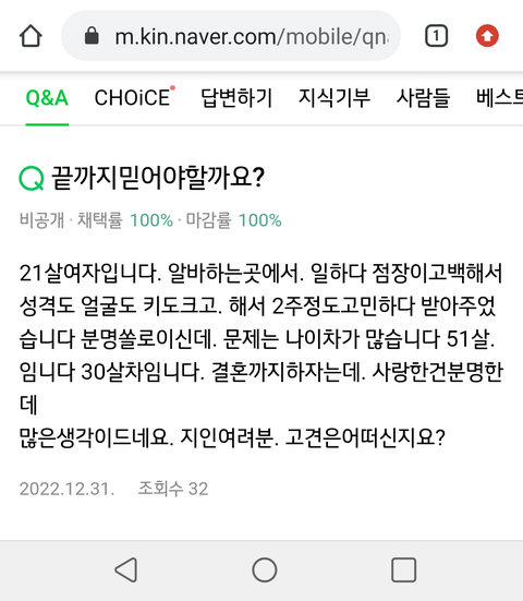 21살 짜리가 쓴게 아니고 51살 짜리가 쓴것 같은데? 21살 짜리가 고견이라는 단어를 쓴다고? 51살 짜리가 21살 짜리 한테 관심있고 어떻게 할려고 사람들이 어떻게 생각하는지 볼려고 쓴것 같음
