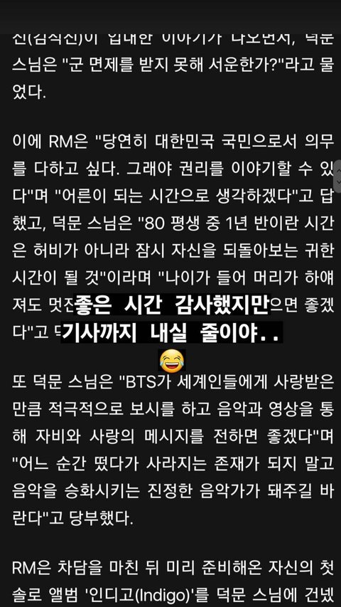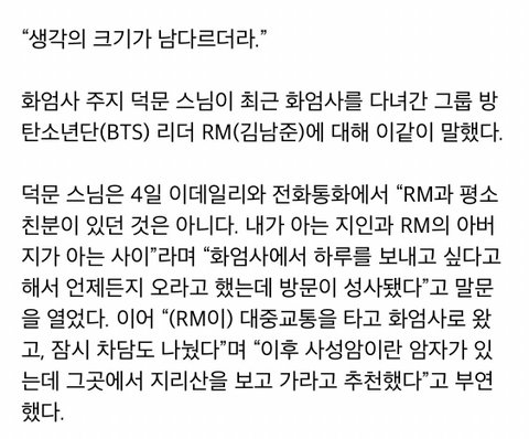 알고보니 어제 올라온 화엄사 기사가 알엠하고 협의가 안된 기사였고 절에 지인이랑 쉬러간것뿐인데 몰찍까지 당함. 심지어 기사 내용보면 스님이라는분이 군대 저걸 질문이라고 물어보고있다 ㅉ 나같아도 개빡칠듯