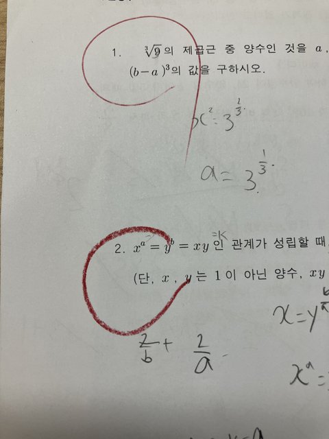 콴다로 답만 맞았는지 확인해봤는데 무의식적으로 동그라미침….이거 어쩌지,,,,,,