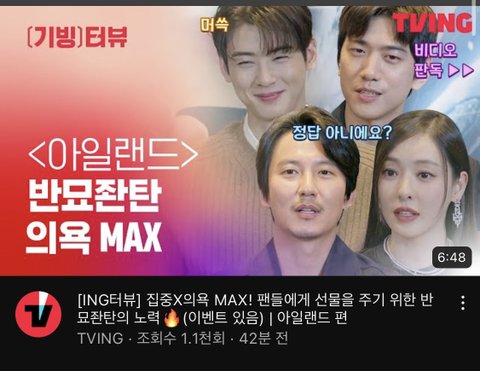방금 티빙 드라마 아일랜드 인터뷰 영상이 떴음