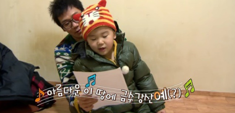 <아빠 어디가>에서 '한국을 빛낸 100명의 위인들'노래 외우기 중
