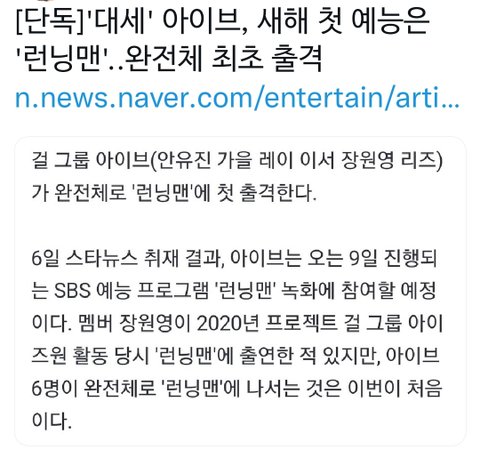 아 런닝맨 애청잔데 개별로 몇명만 나오지 안유진 장원영 레이 이렇게…많으면 개난잡하고 노잼임
