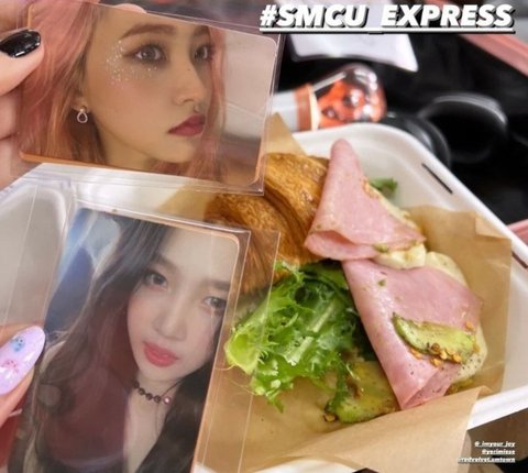 맛있는거 먹을때 포토카드 같이 들고 사진 찍는건데