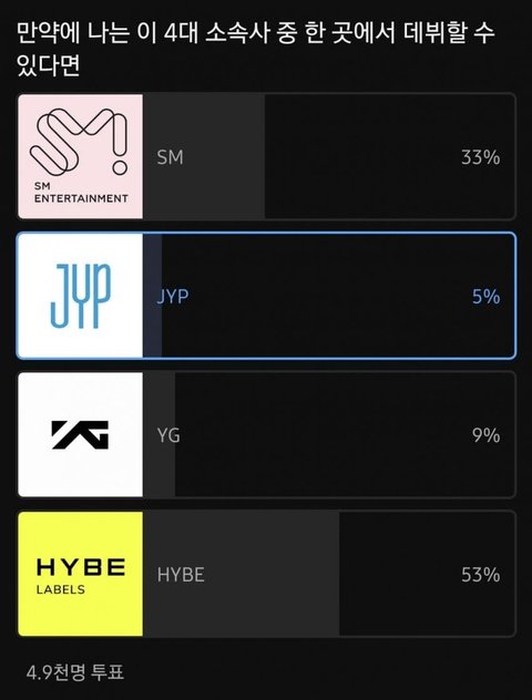 4대 소속사중 한곳에서 데뷔 할 수 있다면 본인은 선택은??