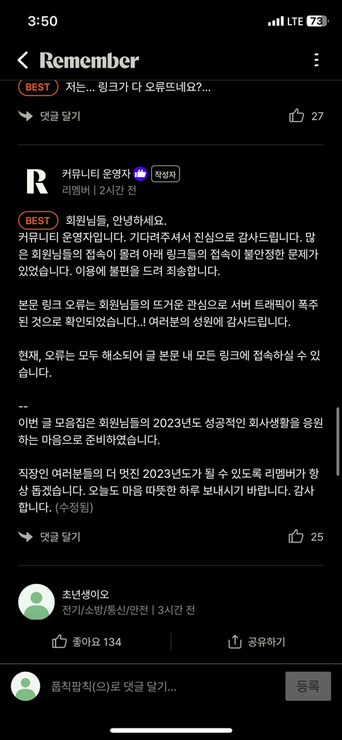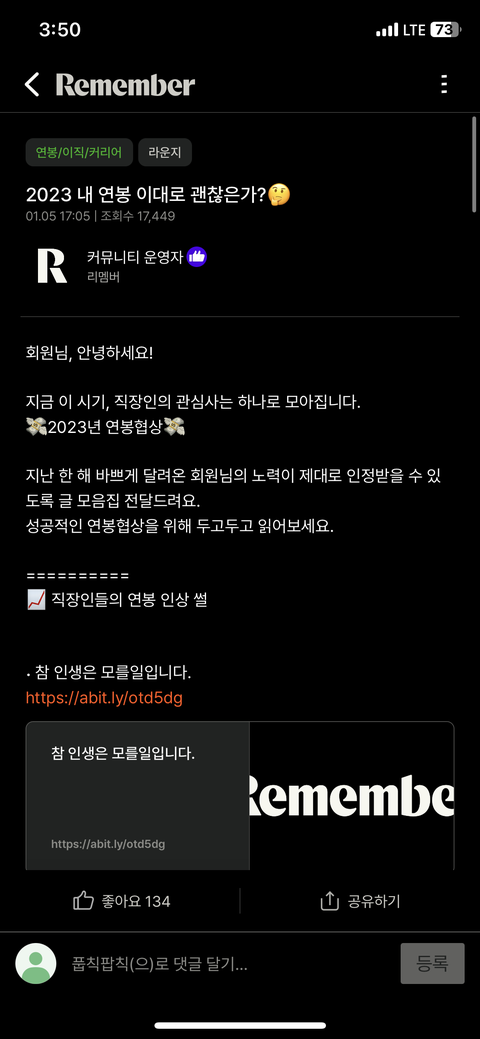 연봉협상 팁 보라고 푸시와서 보고 싶은데 링크 접속이 안 되네요.. 오류 해결됐다는 거 같은데 혹시 저만 아직도 접속이 안 되나요?