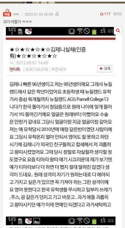 얘 유명한 제니 정병임 이젠 또 뷔까지 끌어들이냐 꺼지세요