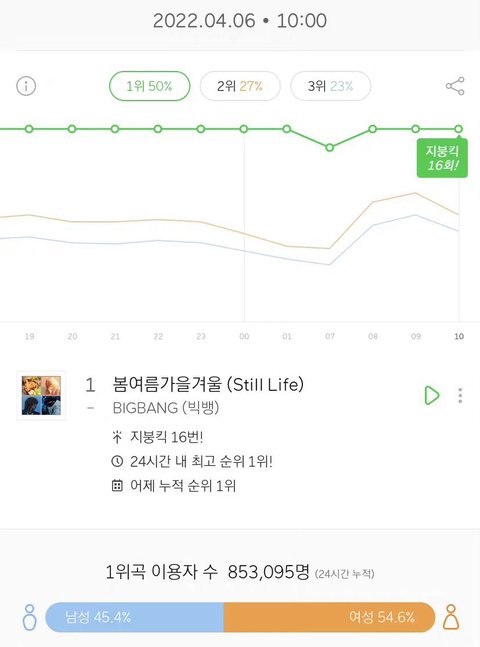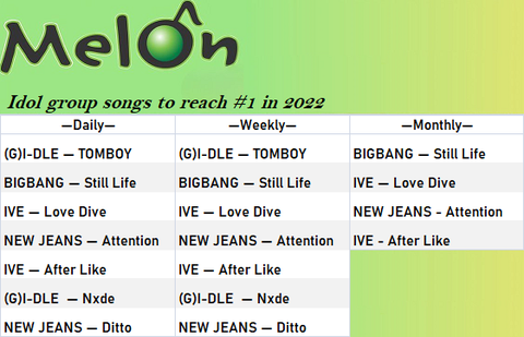 일간 / 주간 / 월간차트 1위 횟수 순위