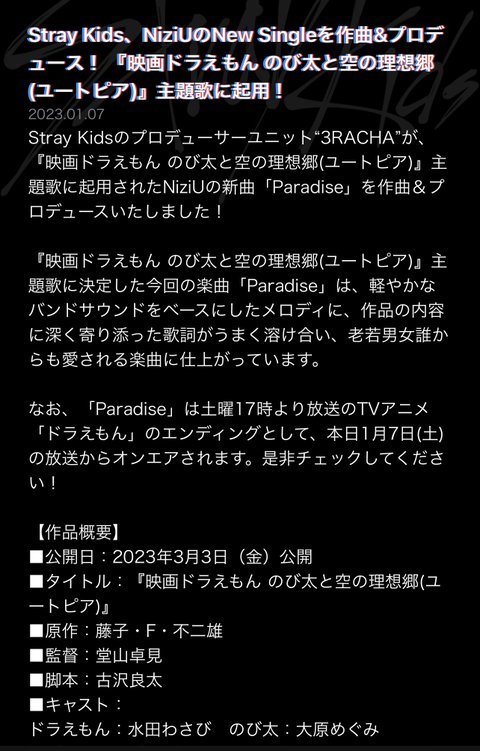 노비타와 하늘의 이상향의 주제가!로 선정됐대.. ㅎㄷㄷ