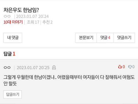 여혐은 또 뭔 상관인지 모르겠네 한남이 한국에 꼬추 달고 태어나서 한국남자 되지 여자 싫어해서 한국남자 되냐?? 우리나라가 뭐 전세계에서 여자 극혐인 남자 대모집 해서 국적 나눠주기라도 하디?
