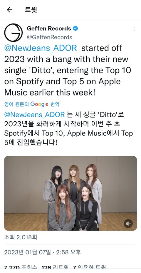 미국에서 뉴진스지금 상위권인데 성적 좋음