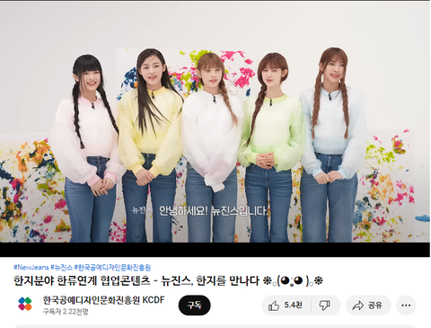 뉴진스를 홍보 대사로 위촉해서 한지+한류 콘텐츠를 제작해서