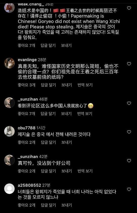 중국팬들이 '종이는 중국의 발명품이다'