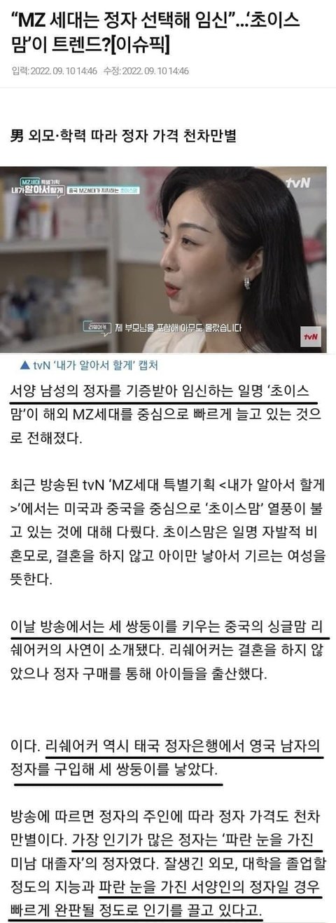비혼, 싱글, 백인 정자은행 초이스맘