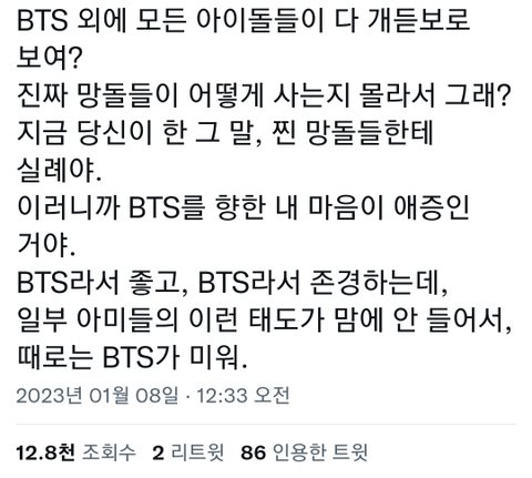 때로는 bts가 미워