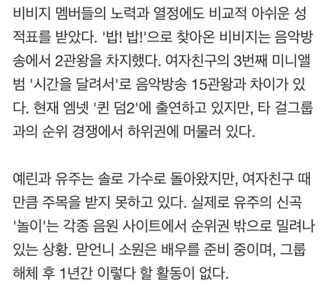 저번에 올라온 기사는 여자친구 멤버들은 비꼬는 듯한