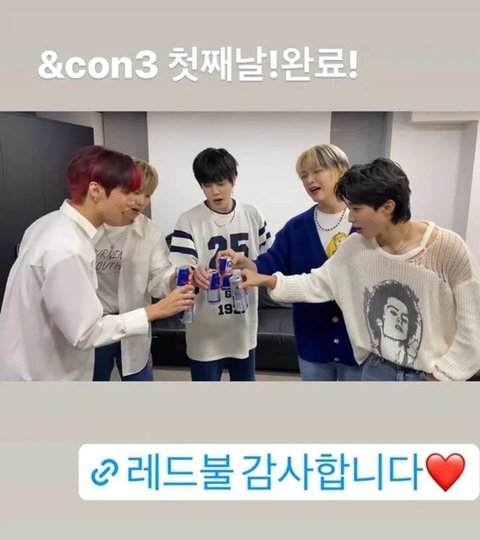 이번 콘서트에서 레드불 협찬받은 엔플라잉멤버들 신나서 인스스 올림 ㅋㅋㅋㅋㅋㅋㅋㅋㅋㅋㅋㅋㅋㅋ 귀여워