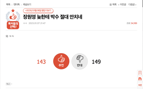 계속 박수 치는데 잠깐 박수 안친걸로 캡쳐해와서 억까질