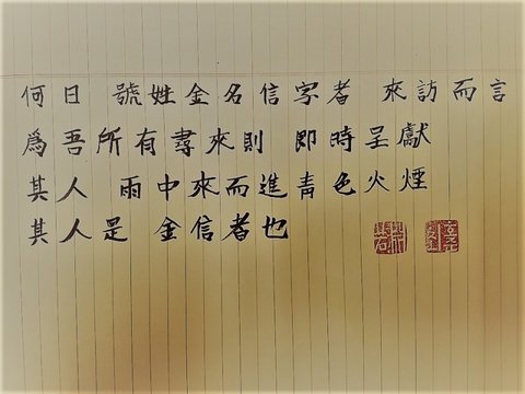 어느날에 김가 성에 믿을 신을 쓰시는 분이 찾아와 내 것을 찾으러왔다 하시거든 드려라.
