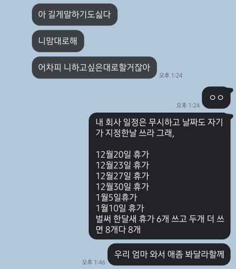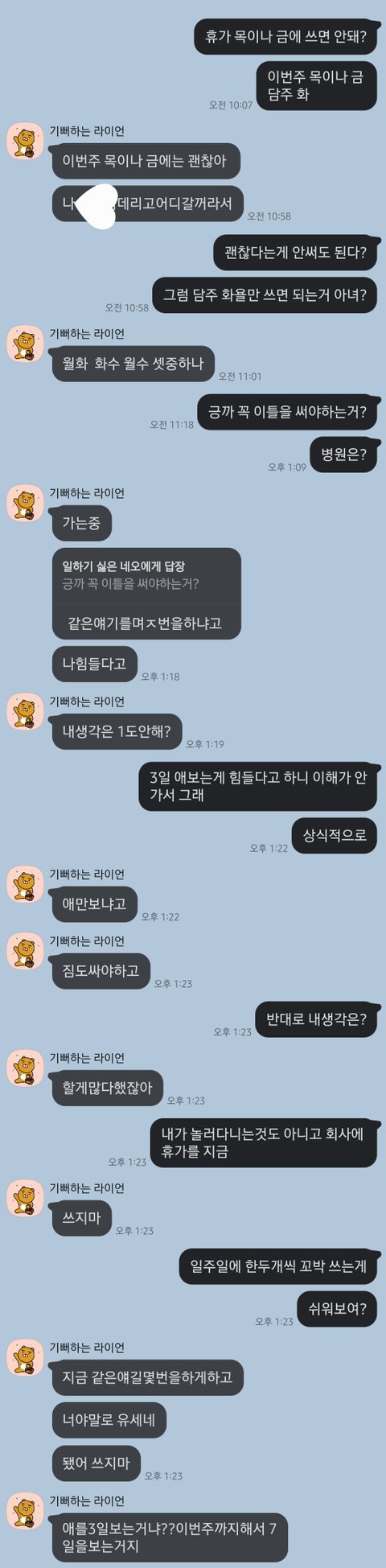 와이프가 이번주 수욜 ~ 담주 수욜휴가 이틀 쓰라고함
