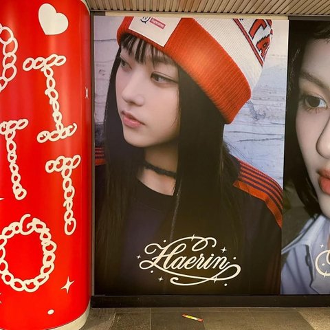 뉴진스 해린 전광판 앞에 떨어진