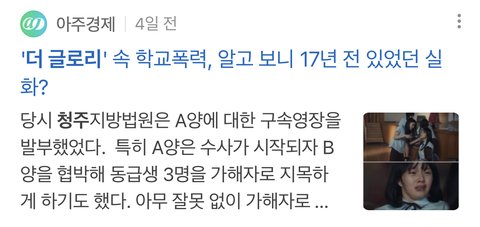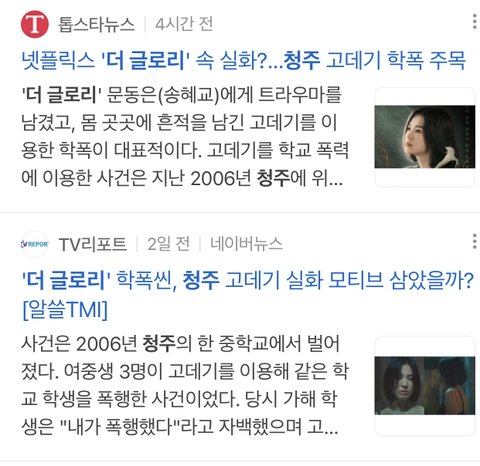 정신 좀 차려 정병들아 김은숙 작가가 자신의 고등학교 2학년 딸 생각해서 드라마 더글로리를 기획한거라고 인터뷰한거야 현진이가 아니라..그리고 드라마 더글로리가 청주 고데기 학폭사건으로 모티브 했다고 기사 까지 나왔는데 김은숙 작가가 현진이 생각해서 드라마 만들었다는둥 거리면서 추하게 작작 좀 우겨
