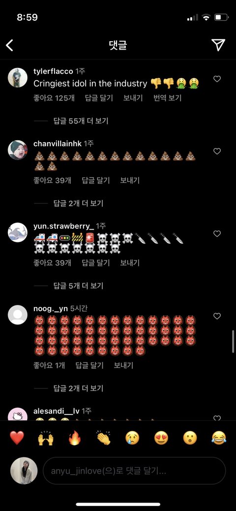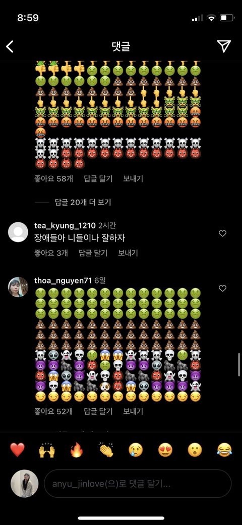 근데 외퀴들 원래 저럼 뭐만하면 몰려가서 이모티콘 테러하는거 ㅋㅋ 블핑도 ㅈㄴ 당하지 않나 맨날 외퀴들끼리 싸우면서 멤버들 인스타 몰려가서 저 ㅈㄹ함