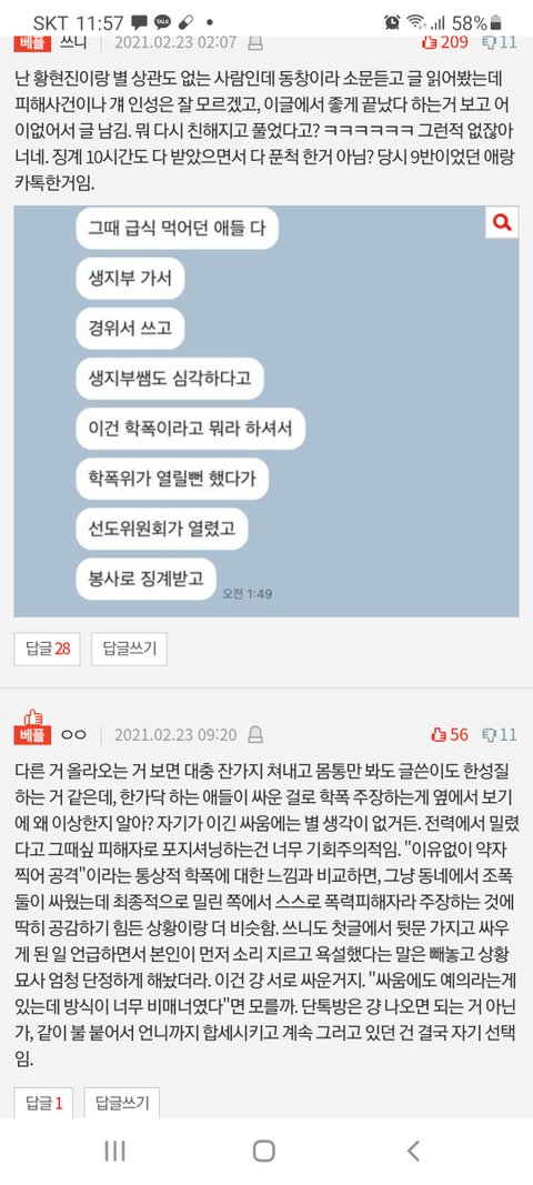 피해자라고 하는 사람들도 학폭위로 징계위원회 열려서 사회봉사 처분 받았다는데
