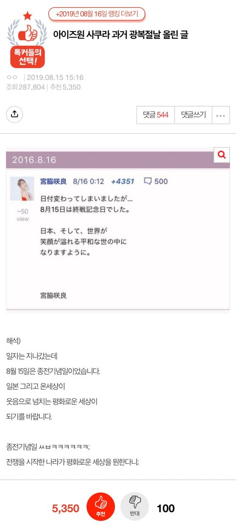 이건 르세라핌 데뷔 후 사건임. 데뷔전에도 데뷔후에도 온통 우익 관련 병크로 가득한 그룹... 그러면서 한국에서 활동을 하는게 레전드