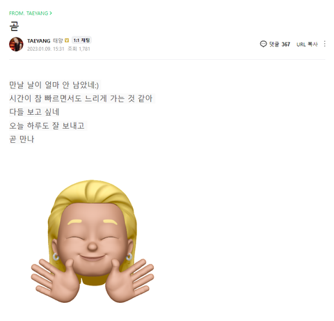 다른 미모티콘 쓰면서 글 올리는 태양 너무 귀여움ㅋㅋㅋㅋㅋ