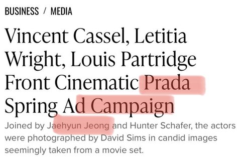 프라다에서 글로벌 앰버서더 중에 뽑아서 글로벌 캠페인 광고 하는데 이름도 첫번째로 걸림