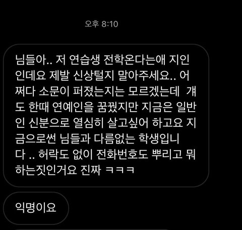 뭔 연습생이 연예인도 아니고 ㅋㅋㅋ...