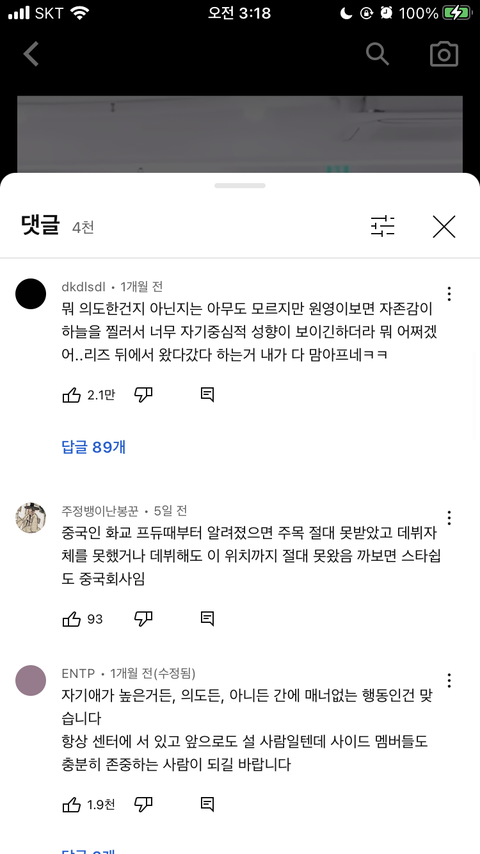 일단 이 영상을 예로 들게 이 영상 댓글에는