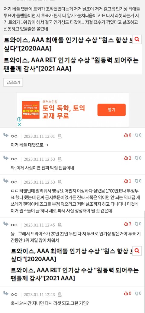 지들 부정투표글 주작 ㅈㄴ 해놓더니