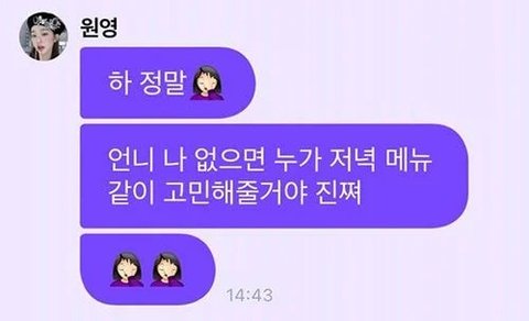 나 없으면 누가 저녁메뉴 같이 고민해줄 거야 진짜