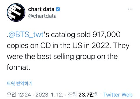 방탄은 2022년 미국에서만 cd 총판 917,000장 팔림