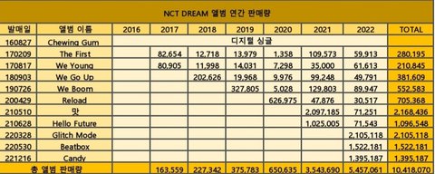 우리 가온 기준 앨범 판매량 1000만장 달성함