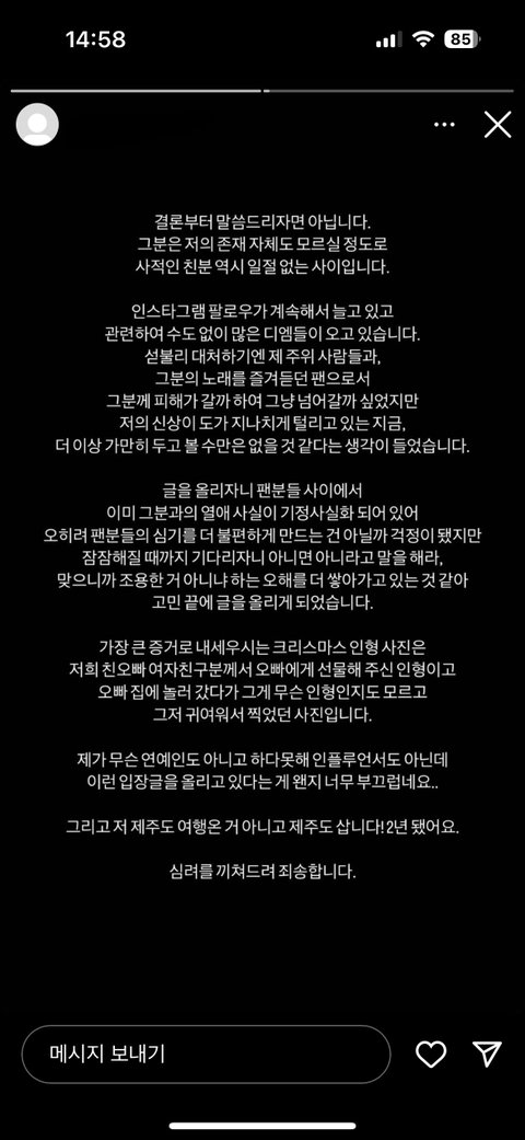 제니 카리나 주어만 바꾸는 걔가 엔터판 분탕 원인임 걔가 리사 로제 윈터 다 돌려까고 댓글에 홍은채 선글라스짤로 시작해서 릇 슴퀴 트와..