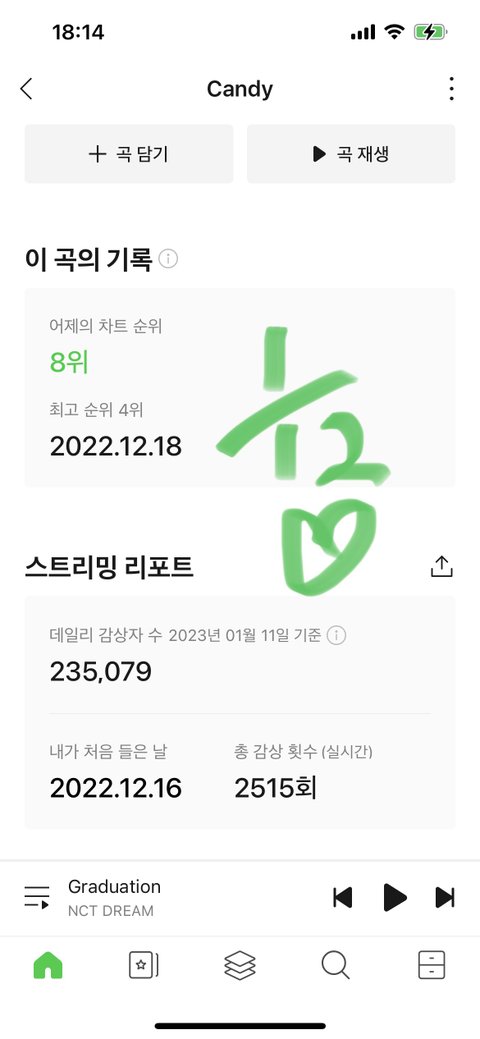 7위 잘 유지하고 있다가 어제 우리 8위로 떨어졌는데 9위였던 분들이 치고 올라와서 우리 지금 상태로면 9위야… 노래 나온 지 이제 거의 한 달 다 되어가는 것도 맞고 저분들은 워낙에 대중픽이 센 분들인 것도 맞지만 저분들 추이 계속 올라갈 때 우리는 계속 떨어지고 있어… 그만큼 지금 탈주하는 사람들이 있다는 건데 우리 지금 힘들어도 절대로 탈주는 하지 말자… ㅠㅠ 물론 지금도 높은 건 맞지만 나는 우리 드림이들 연간까지 들었으면 좋겠어… 그리고 우리 주간 투표도 중요하지만 음원도 진짜 중요해서… 우리 딱 100일까지만이라도 버텨보자!! 준표들 할 수 있잖아!!