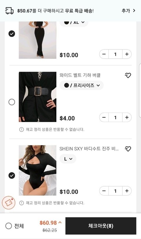 솔직히 SHEIN 주문할때 다들 한개씩 주문 안하잖아 무료배송 받을려고 채워서 주문하지 국제배송이니까