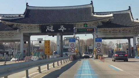 전주는 전반적으로 한옥이 테마인듯 아예 진입하는 톨게이트부터 이렇게 돼있음 한옥마을도 유명하고